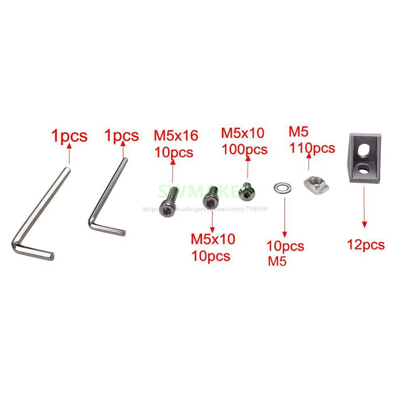 1 set AM8 3D Printer Aluminum Metal Extrusion Profile Frame with / Nuts Screw Bracket Corner for Anet A8 3D printer parts